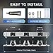 🏡【HIGH-QUALITY METAL BODY】The broom holder wall mount has 3 racks 4 hooks. The 4 hooks and metal body are made of sturdy 304 stainless steel. Resist water, daily scratches, corrosion, and tarnishing, allows remaining longer using and better looking of the broom holder than plastic ones.