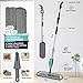 [Dry & Wet Mop with Superfine Sprayer]: The wet spray mop is designed with a superfine mist sprayer that can strictly control the water output, so that the wood floor mop remove stains powerfully when wet use combined with detergent, and the floor dries immediately after mopping. The dry floor mop comes with several soft microfiber mop pads that will not scratch the floors without any water, and the laminate floor mop can also easily remove dirt such as dust, hair, pet hair, etc.