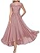 Lace Dresses for Women: Women Tea Length Evening Dresses A-Line Are Made Of Lightweight Skin-Touch Soft And Elastic 100% Polyester Fabrics, Comfy To Touch And Wear, Makes You Feeling Well.Soft Fully Lined.