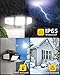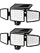 [Unique 2 Sensor Design] The innovative dual sensor design detects motion through a much wider range than single sensor models and provides a full 180 degrees of security coverage. This solar security lights enhanced security feature reduces blind spots and offers more light protection throughout the night.