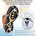 HIGH QUALITY STAINLESS STEEL SPIKES:Abrasion-resistant 19 multi-directional enhanced stainless steel spikes.Welding chain stronger,with more robust spikes.High Strength STAINLESS STEEL SPIKES provides excellent traction on a variety of icy surfaces.Strategic placement of spikes ensures equal distribution of weight for long-lasting comfort and durability.