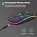 LONG BATTERY LIFE- This Rechargeable Bluetooth mouse is equipped with a 650 mA lithium battery for recharging, which is convenient and environmentally friendly. It can work continuously for a whole week(with LED lights on) against one charge