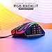 RGB Backlit Macro Programmable Gaming Mouse 19 programmable buttons 5 Memory Profiles each with distinct LED color option for quick identification. Comes with 8-piece weight tuning set (2.4g x8) and 8 different lighting modes