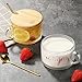 The round cute cup with handle is similar in size to a small bowl. With spoon and dual-purpose cup lid design, bamboo and wood cup lid can be used as a dust-proof cup lid or as an insulation coaster