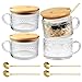 CONVENIENT BAMBOO LID AND GOLDEN SPOON: The set of 4 vintage glass mugs comes complete with a beautiful bamboo lid and a golden spoon. The lid will keep your drink hot for longer, and the spoon is perfect for stirring or scooping. The combination of the lid and spoon makes these mugs not only stylish but also practical.