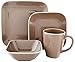 Stoneware dinnerware set includes 4 each: 10. 5 inch dinner plate, 7. 5 inch salad plate, 5. 25 inch bowl, 10. 5 ounce mug