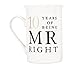 Finished with text on the front and back which reads "10 years of being Mr right" and "10 years of being Mrs always right".