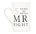 Finished with text on the front and back which reads "5 years of being Mr right" and "5 years of being Mrs always right".