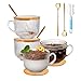 CONVENIENT BAMBOO LID AND GOLDEN SPOON: The set of 4 vintage glass mugs comes complete with a beautiful bamboo lid and a golden spoon. The lid will keep your drink hot for longer, and the spoon is perfect for stirring or scooping. The combination of the lid and spoon makes these mugs not only stylish but also practical.