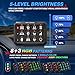 ✦11 RGB Color Patterns & 5-level Brightness ✦ Upgrade more backlit colors to match your vehicle and brighten your mood. Short press "RGB" button to switch 8 single color(red orange yellow green cyan blue purple white), and long press to switch between Gradient/ Jump/ Breathing. Also, there are 5-level brightness adjustment (100%, 75%, 50%, 25%, 10%), offer you most comfortable visual brightness while driving