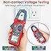 Non-contact Voltage Testing: This Clamp Meter features non-contact voltage testing with sound and light alarms. When the Meter senses a weak AC signal, the green indicator light will come on and the buzzer will emit a slow, audible beep. when the Meter senses a strong AC signal, the red indicator light will come on and the buzzer will emit a brief beep