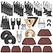 【154 PACKS MULTITOOL BLADES KITS】A totally cost-effective tool set including 10 different blades, 2 pads and 120 sandpapers. It can help you solve variety home repair or renovate work, perfect for wood/plastic/plaster/metal cutting and polishing.