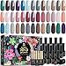 Easy Application and Good Tenacity: 32 gorgeous colors of 9-Free Gel Polish with low odor - No harsh ingredients or adhesives that lead to damaged nails. The series of Black Brown Gray Yellow uv nail polish set is long-lasting for 21+ days with perfect shine under proper application - With clear base gel matte glossy top coat under the full application process.