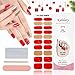 Gold glitter gel nail strips: 8pcs Pure red nail wraps and 6pcs champagne glitter strips, 6pcs red strips with snowflakes. New style semi-cured gel nail strips are made of real gel nail polish ingredients instead of plastic materials. Excellent quality, more real.