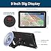 【9 inch Sat Nav with Sunshade】: navigation with a large display helps you find everything super well, especially suitable for professional truck drivers and older people. The suction cup with the base holds the navigation very firmly despite the size. Thanks to the free self-adhesive 3M holder, the navigation system can also be attached to the dashboard.