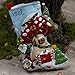 FESTIVE DESIGN - This unique Christmas stocking features a mushroom house covered in lights and garland being decorated by three gnomes - perfect for any holiday celebration!