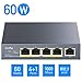 5 Port PoE+ Switch: 5 Gigabit Ethernet ports, 4 PoE+ ports with 60W total power budget, Maximum 30 Watts Per Port
