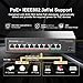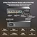 11 Gigabit PoE Ports: Includes 8 Gigabit POE ports, 2 Gigabit Uplink and 1 SFP Port, all ports support gigabit rate(1000Mbps), With excellent data exchange performance, the SFP port can be connected to optical fiber, suitable for long-distance transmission greater than 100 meters.