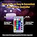 【16 colors and Remote Control】Simply controlled by a 24 keys IR remote or smart touch button within 16 single colors static modes and 4 dynamic flash colors modes(Flash/Strobe/Fade/Smooth) and brightness adjusted. Extremely easy to use. Always a color or modes you want with plentful colors.