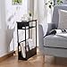【SPACE SAVING】This side table with storage measures 18.1"(L)*7.1"(W)*24.6"(H), with smart and narrow construction of 7.1-inch width, this industrial accent table is perfect for small spaces as a sofa end table,nightstand put in the corner and small spaces, the side table not very spacious but still has enough space to add a lamp, drink and magazines or books in the top panel; You can put phone remote control and other mess in a neat and the lower storage, and you can put books papers or magazines in the wooden rack featured bottom.