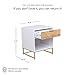 Kensi white side table has a unique and elegant design with its natural wood finish drawer decorated in a sleek, elegant herringbone design and a matte white paper frame. Add a chic touch to this piece with the light gold powder-coated legs that have footpads attached to keep your floors from being scratched..Assembly Required.Material:Engineered Wood