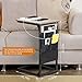 【Versatile Storage Space】The C Shaped Side Table with 1 top open wooden tabletop shelf and 1side pockets offer you ample space to storage.prop up your drinks and snacks on the table top, place your books, magazines, remotes, wallets, chargers and charging cable on the side pockets, meet the daily entertainment and relax needs.