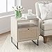 Kensi wood side table has a unique and elegant design with its rustic solid wood drawer decorated in a sleek, elegant herringbone design and a walnut paper frame. Add a modern touch to this piece with the matte black powder-coated legs that have footpads attached to keep your floors from being scratched..Assembly Required.Material:Engineered Wood.Item Dimensions:19" L x 17" W x 22" H