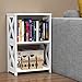 This side table is small size. It is 15 L x 9.5 W x 23.6 H inches. And it is cute with color white as well as the X design on the sides, which goes well with any style of decoration. It is very good to work as small bookcase bookshelf and end table.