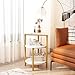 ✔ 【Aesthetic yet Utilitarian】This gold and white side table features 2-tier open display shelves provides extra storage space, practical without sacrificing beauty. With spacious tabletop (20" x 20") and a extra open lower shelf (15" x 15") provide just the right space for your drinks, vases, table lamps, remotes, or books/magazines, etc. Measure: 24” H x 20” W x 16” D(overall) . Each shelves could hold up to 35lb.