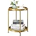 【Material-Size-Color】-This end table made from durable metal structure,all metal finish,compare wood side table that metal side table can be wear-proof,scratch-proof.Side table small size is 16.9''D x 18.1''H;this end table inside top is painted matte black,the legs and outside are a matte gold finish.With this round end table giving you a comfortable place to enjoy family time or just rest after a long hard day.