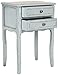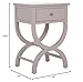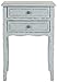 A soft Ash Gray finish adds a rustic touch to the simple, contemporary styling of the Molina Accent Table. With two drawers and large open cabinet, there is plenty of room for storage in the bedroom as a side table, in the living room or den tucked next to the sofa, or even in a home office for paper storage and use as a printer stand. Made of durable composite wood with modern matte-silver plastic drawer pulls.