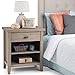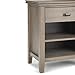 Features one bottom drawer with metal drawer glides and large open shelf for storage