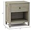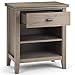 Features one (1) spacious drawer with metal drawer glides and open bottom storage area with one shelf