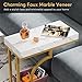 【1.97" Thick Faux Marble Tabletop & Easy Carefully】 - Featuring a 1.97" thick faux marble tabletop and sturdy metal support. The white gold end table offers a super strong load-bearing capacity, perfect for displaying books, decorative items, and personal belongings. Easy to care for and without worrying about maintenance, just wipe with a damp or dry cloth when dirty.