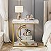✔ 【Aesthetic yet Utilitarian】This gold and white side table features 2-tier open display shelves provides extra storage space, practical without sacrificing beauty. With spacious tabletop (20" x 20") and a extra open lower shelf (15" x 15") provide just the right space for your drinks, vases, table lamps, remotes, or books/magazines, etc. Measure: 24” H x 20” W x 16” D(overall) . Each shelves could hold up to 35lb.