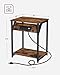 Bedside Table with Charging Station: Add functionality to your industrial-styled home with this nightstand table with USB ports and power outlets. Featuring a built-in charging station on the side of the table for easy accessibility. The grey table has three USB charging ports and two standard outlets that quickly charge your phone, lamp, and laptop.