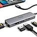 【High Speed Transfer】USB3.0 Port speeds up to 5Gbps,transfer images,files,and videos in seconds.Allow you to connect phone,keyboard,mouse,thumb drive,camera,hard drive,etc. Quickly access your image/video throught bulit-in SD/Micro SD card slot.USB-C PD charging port allow delivers power at Max 60W.