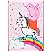 PEPPA PIG DESIGN PRINTS MAY VARY: Peppa Pig and her magical unicorn bring their playful and friendly energy to this soft throw. Featuring a "Ride A Horsey" pattern, it captures the cute and colorful look of the long-running Entertainment One animated series.