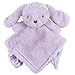 Plush 3" purple bunny head with a 12" x 12" security blanket with a satin backing for soft feel against skin