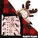 BUFFALO PLAID MOOSE DESIGN NURSERY COMPANION-This rustic moose blanket with animal face features red and black buffalo plaid on the front and brown moose tile pattern on the back. This cozy and attractive design unisex baby lovie will be the perfect nursery décor toy to accompany your baby!
