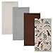 One solid gray, one gray/orange stripes, one ivory/beige stripes, one beige with allover dino print