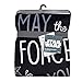 May the Force be with you is printed inside the Millennium Falcon which is surrounded by tie fighters, Death Star, and stars