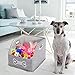 4.The dog toy storage works well because the box is wide and shallow, the dog likes picking and rummaging through to find the toy he wants so this product is good for that. the storage basket stands upright and the convenient handles make it easy to transport or move when needed.