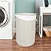 MADE FROM BAMBOO WITH A STURDY STRUCTURE: This round hamper for laundry is made from bamboo, with a lid at the top that secures all of your clothes. This holder has a sturdy metal frame that helps keep the liner in place. The sides of this basket have handles for easy carrying