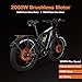 【26"x4" Fat tire Electric Bike】: 4" fat tire is more durable, has a firmer grip, and gives you better control over the 2000w electric bike in different terrains, whether highway, snow field, mountain, beach, or gravel roads. You can enjoy your ride anywhere.