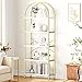 Modern & Luxurious Design: Narrow bookshelf combines an arc top and golden metal frames with a marbling finish to emphasize the elegance of its lines and the lightness of its design, The two-tone gold with white marbling finish delivers a naturally modern feel and creates a stylish and luxurious vibe, which adds a glamorous aesthetic to your space, this gold bookcase can fit perfectly with almost all other furnishing items.