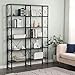 [Stable Structure] Crafted from a metal frame with an X-frame crossbars on the back and an extra support rail under each shelf, which increase the stability and weight capacity greatly. This book shelf has a brief and stylish appearance that adds an artistic touch, while it ensures stability.