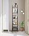 Narrow Bookshelf for Small Spaces: Our narrow shelf unit for small spaces only takes up 13.4’’ x 13’’ but offers 5 tier of storage, perfect for use in narrow space or room corner to hold books, photo frames, pantry shelf or kitchen storage rack and more. It's a great display and storage option for your bedroom, living room, kitchen or office.