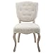 FINE UPHOLSTERY - Upholstered in polyester fabric, the Louis XIV style chair adds distinction around a table. Quilted detail and timeless button tufting are a luxe complement to the weathered frame