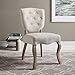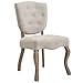 FINE UPHOLSTERY - Upholstered in soft polyester fabric, this vintage dining chair adds distinction around a table. Elegant button tufting creates the perfect complement to the weathered wood frame
